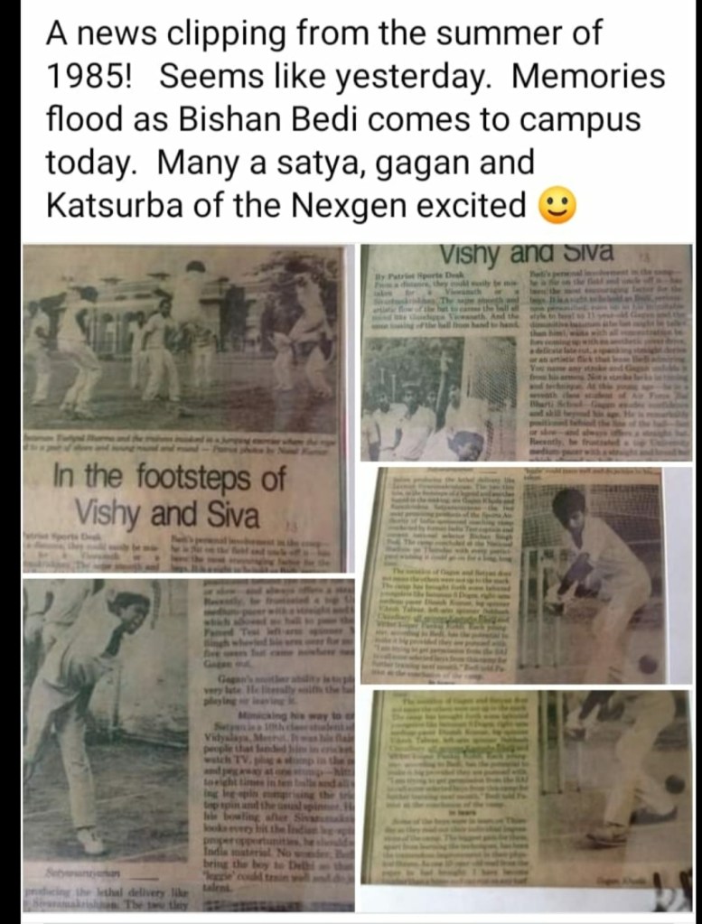 In 1985, Sports Authority of India (SAI) announced their first month-long coaching camp in Cricket with Bishan Singh Bedi as the coach for the youth, under 16 and under 19. Father was in department of telecom and posted in Meerut. Satya was in school and I was in undergrad program. As the coaching camp was in the summer break, Satya and I persuaded our parents to send us to Delhi, for the trials. I was an 18 year old and Satya was 14 and parents relented finally as one of father’s friends was living alone in Atul Grove Road, in Delhi and he said we can live with him at his one bedroom apartment if we get selected for the camp.