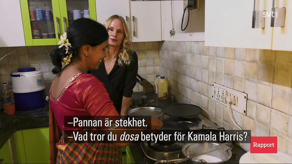 Indira got a call from one of our friends, Ms Moulshri, an eminent architect, co-founder of Space Matters, saying that Swedish TV, SVT wants to do a story on “Dosa” connect of the US Presidential candidate, Ms Kamala Harris, as her mother comes from a South Indian lineage. What better than showcasing that connect in a short report with Dosa dining at a South Indian home, thought the Senior South Asian Correspondent of SVT in India, Ms Malin Mendel who is also a prolific writer with four acclaimed cook books, all based on Indian cuisines.