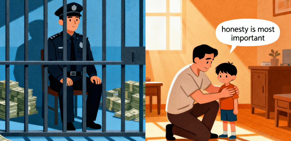 “He may have, but it took him some days to look into my eyes. After that, he took to a very pious and simple living. But the incident gave me a lesson for life. I can keep your mother and you without a meal or two, but I will never allow you to feel small and insulted as I felt on that day begging that inquiry officer. The injury, insult and pain to the ego of your family when you face such accusations are much more than the happiness you get from the goodies/gadgets which you get through corrupt practices.